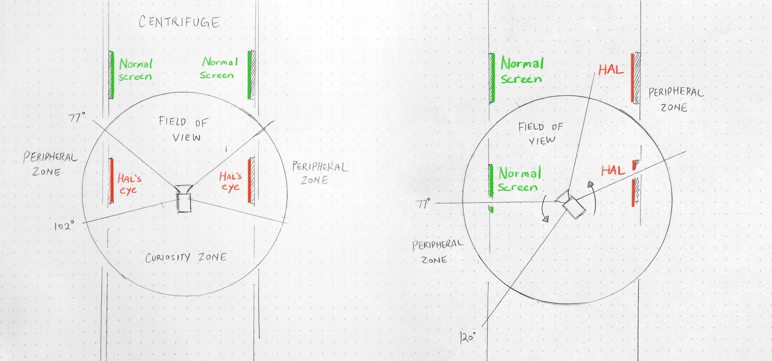In the final weeks leading up to the show, I realized that I wasn’t able to get the right effect I wanted with HAL’s interaction. At times, it was tricky to get HAL to appear directly within the viewer’s peripheral zone. Once I knew it wasn’t a guarantee, I had to consider another plan.
