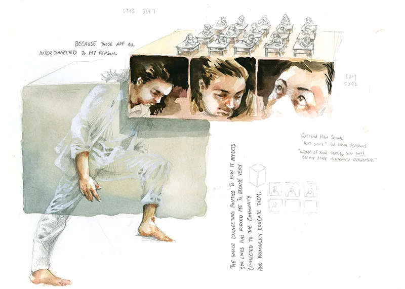 This series of illustrations is based on an interview with an undocumented student. She shares her family's history, sense of identity and dreams for the future.
